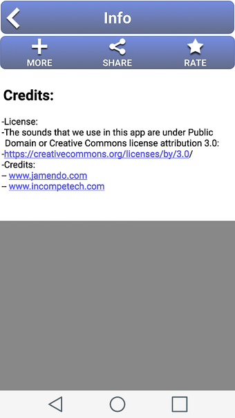 Je zult veel verschillende geluiden in de app kunnen vinden. Sommigen van hen zijn liedjes, sommige zijn beltonen en andere zijn alarmgeluiden. Het belangrijkste is dat ze allemaal onder het publieke domein of de creative commons-licentie vallen. Dit betekent dat u ze in uw projecten kunt gebruiken, maar dat u de oorspronkelijke auteur moet vermelden. Je kunt de geluiden ook gebruiken in je apps, games of elk ander project dat onder het publieke domein of de creative commons-licentie valt.